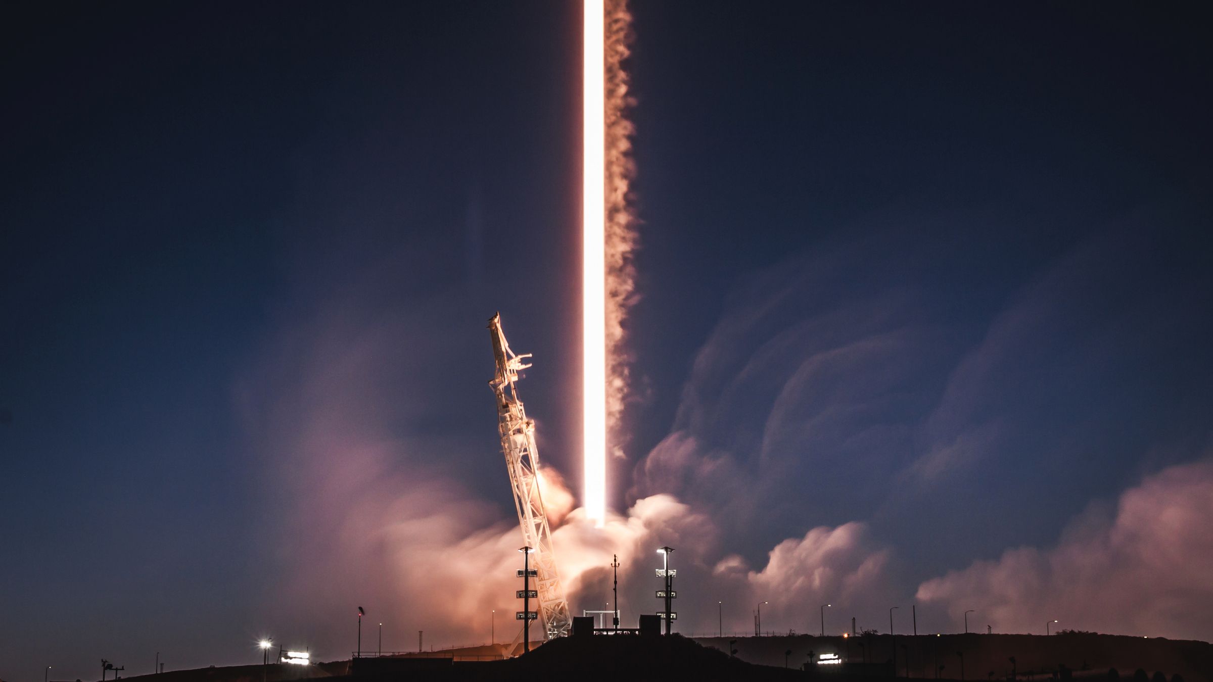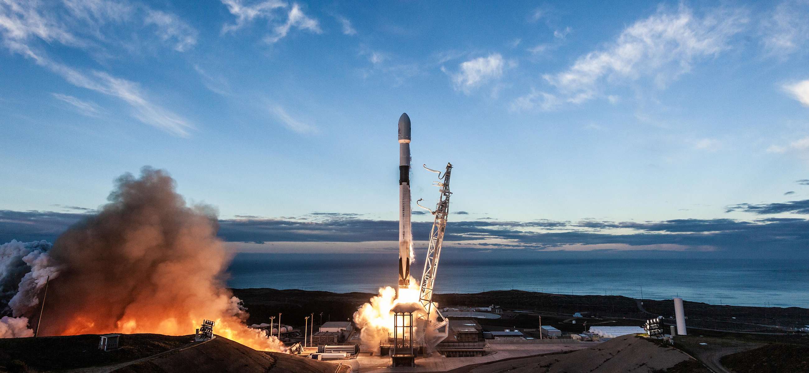 Falcon 9 leaves a trail of light as it lifts off from Vandenberg Air Force Base
